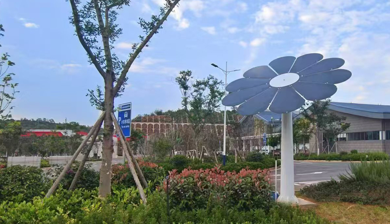 2023年,兩朵“會追日”的光伏太陽花在深圳北站廣場驚艷亮相,成為一道獨特的科技與藝術(shù)景觀。該項目不僅以其智能追光系統(tǒng)高效發(fā)電,更兼具藝術(shù)觀賞與夜間照明功能,完美詮釋了綠色基礎設施的多元價值。其創(chuàng)新的設計理念與顯著的示范效應,獲得了深圳衛(wèi)視的重點報道,被視為深圳推動綠色低碳城市建設的生動典范,向公眾展示了科技與自然和諧共生的未來城市圖景。
