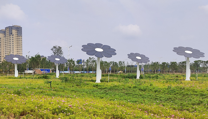 在廊坊的會展廣場,五朵“永不凋零”的太陽花向陽而生。它們是會呼吸的藝術(shù)品,以光影勾勒城市的輪廓;它們是沉默的能源守護者,將陽光轉(zhuǎn)化為動能;當星夜來臨,它們又化作溫柔的光之島嶼,照亮每一位行人的歸途。這,就是未來城市的綠色詩意。